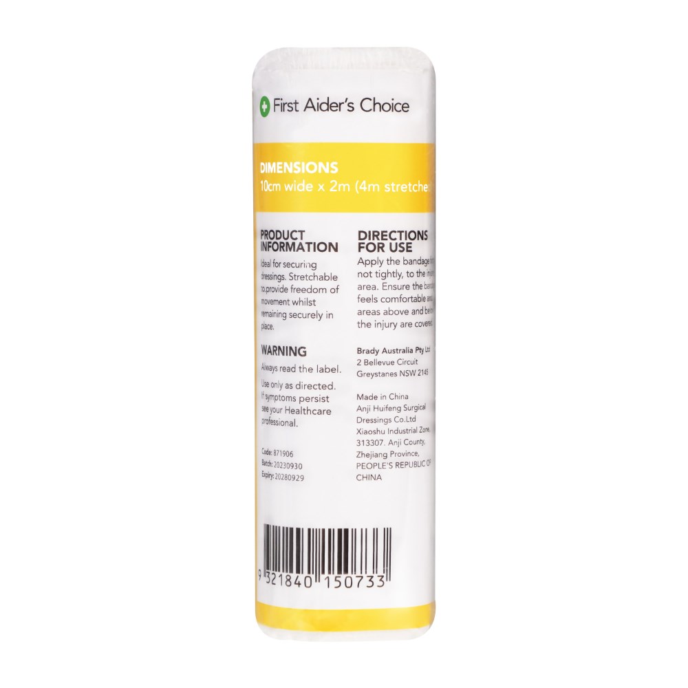 • First Aider's Choice Conforming Bandage 10cm Wide White