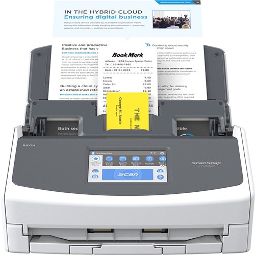 Comes with Wi-Fi connectivity, making it the perfect model for team sharing and combined use with cloud services. Intuitive 4.3-inch touch screen. Wi-Fi (2.4 / 5GHz) compatibility. Speedy scans up to 40 ppm/80 ipm (A4-size documents, color, 300dpi). 50 sheets Automatic Document Feeder (ADF). Ultrasonic sensor and high-quality brake roller for stable feed. Receipt guide provides stable scanning for inconsistent paper sizes. Streak reduction producing clean images. 1 Year Manufacturer's Warranty.