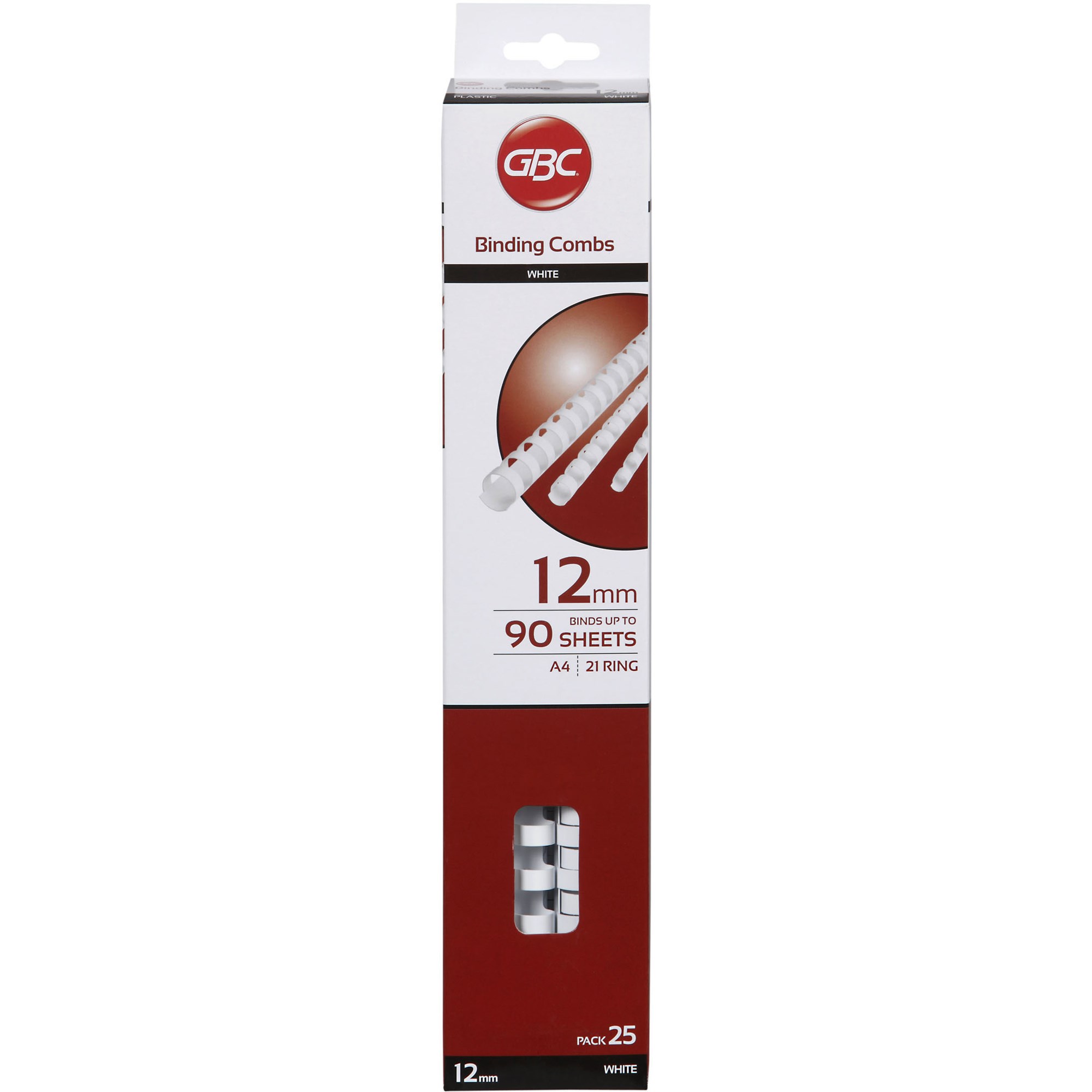 GBC Plastic Binding Comb 12mm 21 Loop 90 Sheets Capacity White Pack Of 25