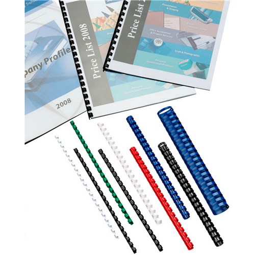 High quality plastic combs for use with all standard binding machines. Available in an array of colours and sizes from 6mm to 51mm. Combs can be reopened to insert or remove pages at any time. Allows for finished documents to lie flat when turning pages. Plastic combs are cost effective and durable.