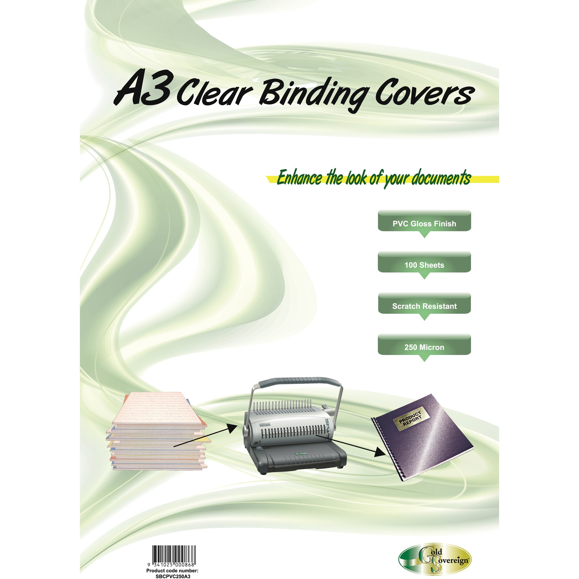 Gold Sovereign Heavy Duty Binding Covers 250 micron A3 Pack of 100 Clear