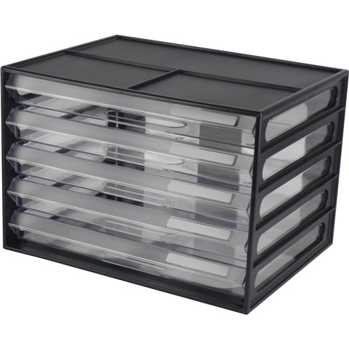 • Italplast A4 Document Cabinet 5 Drawer Black & Clear