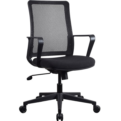 • Black plastic back panel with high quality mesh and High Density Seat Cussion.