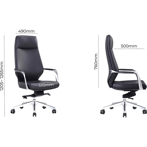 Weight Rating: 160kg. Executive Knee Tilt Synchro Mechanism - 4 Locking Positions. Chair Dimension: Seat Width 500mm, Seat Depth 520mm, Back Height: 760mm, Overall Height 840mm-1050mm. Indicative Seating Time: 8 hours. Premium Genuine Leather Upholstery in Black. Aluminium Arms with Genuine Leather Padding. Class 4 HD gas lift and Luxury Alloy Base. 60mm Executive PU castors. 7 Years Manufacturer's Warranty. Delivery, installation and assembly charges may apply to furniture. Please enquire to confirm.