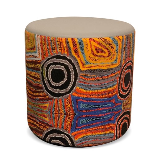 A unique commercial fabrics designed by Mary Napangardi Brown (Indigenous artist) combined with K2 Commercial PU Leather. Weight rating: 120kg. Indicated seat hours: 12 hours. Dimensions: 450 Diameter x 450mmH. Provides flexible seating for open plan areas, reception and education spaces. Concealed feet. Fire retardant contoured moulded foam. Available in different size on request. Product image for reference only. Design pattern may differ as a result of variations in the art work. 5 Years Manufacturer's Warranty. Delivery, installation and assembly charges may apply to furniture. Please enquire to confirm.