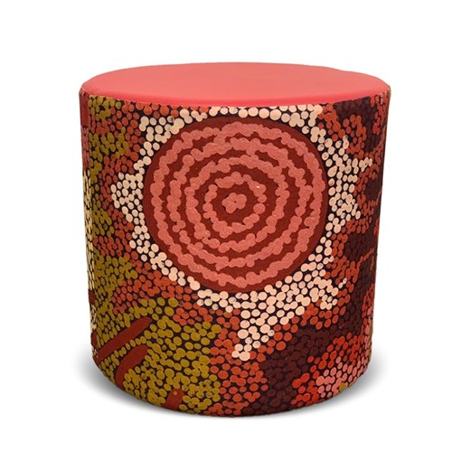 A unique commercial fabrics designed by Damien and Yilpi Marks (Indigenous artist) combined with K2 Commercial PU Leather. Weight rating: 120kg. Indicated seat hours: 12 hours. Dimensions: 450 Diameter x 450mmH. Provides flexible seating for open plan areas, reception and education spaces. Concealed feet. Fire retardant contoured moulded foam. Available in different size on request. Product image for reference only. Design pattern may differ as a result of variations in the art work. 5 Years Manufacturer's Warranty. Delivery, installation and assembly charges may apply to furniture. Please enquire to confirm.