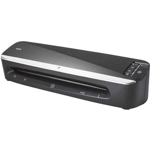 Sturdy A3 Laminator ideal for school or office. Reverse function allows you to release incorrectly inserted pouches. Control buttons for easy selection of pouch Laminates pouches 80 -125 micron. 4 roller Hot or Cold lamination. Warm up time 1 minute. Lamination speed 480mm/min. Includes 10 laminating pouches. Dimensions: 470W x 146D x 123mmH. 2 Year Manufacturer's Warranty.