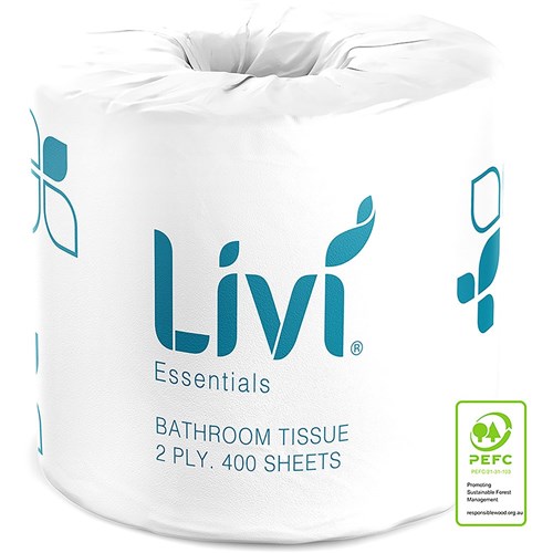 Livi Essentials Toilet Paper Rolls 2 ply 400 Sheets Box of 48 1001