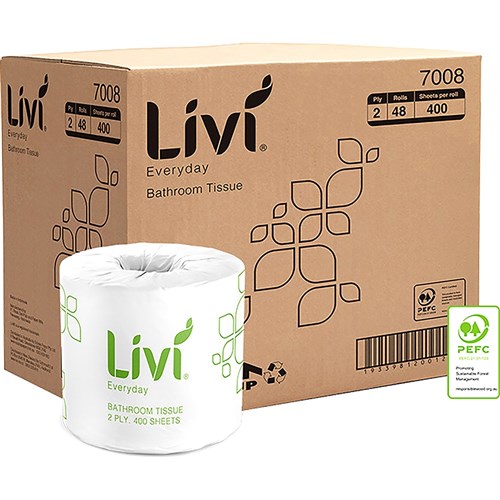 Livi Everyday Toilet Paper Rolls 2 ply 400 Sheets Box of 48 7008