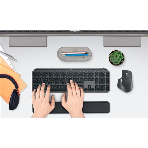 MX Keys Combo for Business Gen 2 designed for precision, speed and comfort. Smart keyboard backlighting: hand proximity sensors turn the backlighting on and ambient light sensors adjust backlight brightness. Speed and precision with 8000 DPI optical sensor tracking-even on glass. Switch between up to 3 paired computers using Easy-Switch button/keys. Wireless with 2 ways to connect: Logi Bolt USB receiver, Bluetooth Low Energy Wireless Technology. Up to 10 meters wireless range. MX Keys Dimensions: 131.6H x 430.2W x 20.5mmD. Weight: 810g . MX Master Dimensions: 107H x 59W x 26.5mmD. Weight: 100g . Includes MX Palm Rest 64 x 420 x 8mm. 2 Year Manufacturer's Warranty.