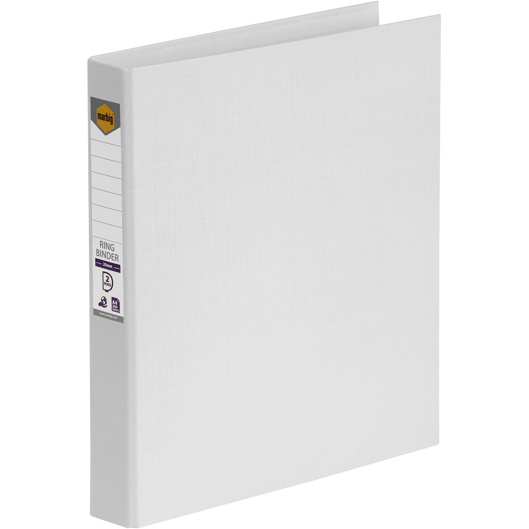 Marbig Linen PE Binder A4 2D Ring 25mm White