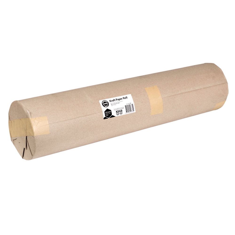 Excellent for wrapping boxes, parts or interleaving. Kraft paper rolls come complete with a core adaptor for use with dispensers. 200gsm. Measurements: 900mm x 100m. Made from 100% recyclable kraft paper.