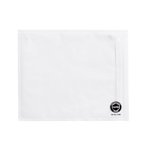 Self Adhesive superior grade adhesive and polyethylene prevent crinkling and sticking to itself. Only 2 folds for A4 sheets. Plain no print. White background.