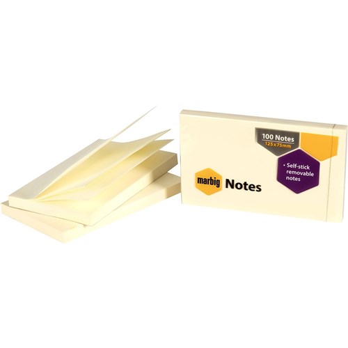 Marbig Repositionable Notes 75 x 125mm Yellow 100 Sheet Pad Pack Of 12