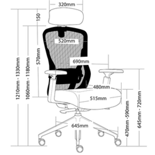 Adjustable seat height. Adjustable seat and back angle. Seat slider allowing adjustable seat depth. Auto weight tensioning. Big Boy memory foam seat. Adjustable lumbar. Synchron mechanism with 3 locking positions. 645mm black nylon 5 star base. Adjustable headrest and arms. Chair Capacity: 130kg. 5 Year Manufacturer's Warranty. Delivery, installation and assembly charges may apply to furniture. Please enquire to confirm.