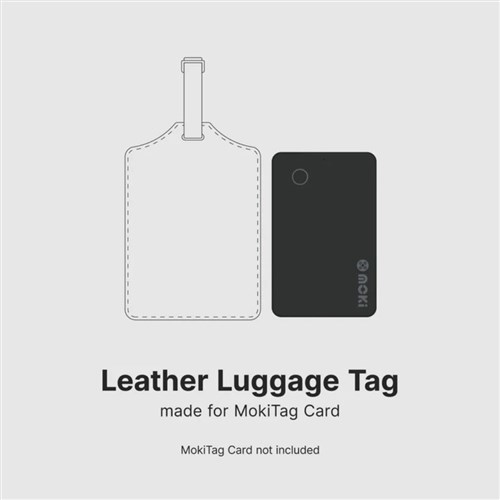 Luggage tag for MokiTag Card. Crafted from durable sustainable leather. It provides a secure and reliable way to attach your MokiTag Card to your luggage. 12 Month Manufacturer's Warranty.
