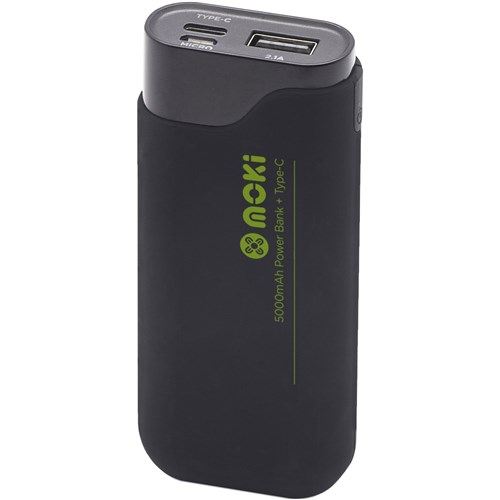 • Moki PowerBank 5000mAh Type-C USB-A & MicroUSB 2 Port Black