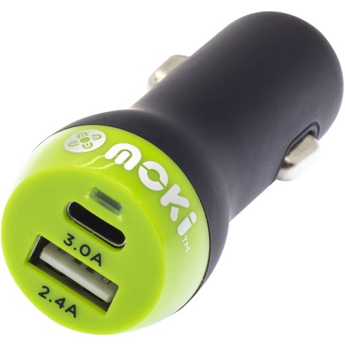 Moki Type-C + USB 3.0 Rapid Charge Car Charger Black