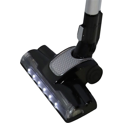 Cordless and bagless design. Removable battery pack for easy charging. Accessories include motorised floor tool, steel tube, 2-in-1 nozzle and charger and wall mounting bracket. Washable filter and bristle roll. Single click to empty clear acrylic dust canister. 3 power modes. Power: 150 Watts, Weight: 2.0 kg, Noise: 78 db. Battery life: up to 40 mins on low speed without motorised head. AUS/NZ Electrical Safety Standards approved. 1 Year Manufacturer's Warranty.