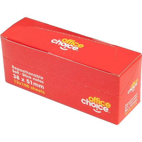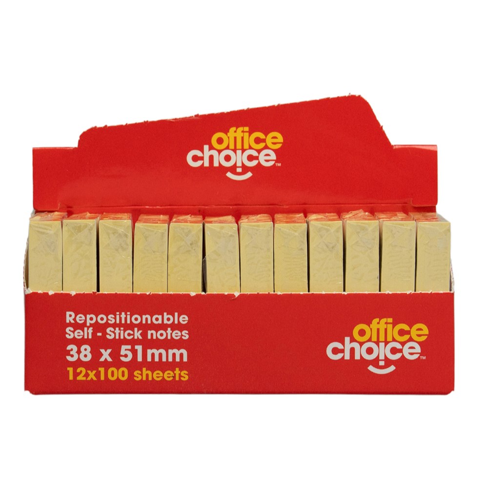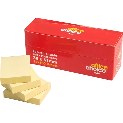 Office Choice Repositionable Sticky Notes 38 x51mm Yellow 100 sheets