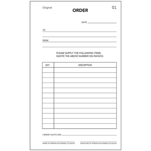 Provides a quick and effective way of managing any business transaction. 200 x 125mm. Sequentially numbered for filing and accounting purposes. Ideal for taking customer orders. FSC certified.