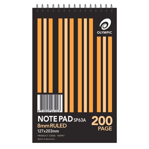 Olympic Spiral Notepad SP63A Shorthand 127x203mm 8mm Ruled Top Bound 200 Page