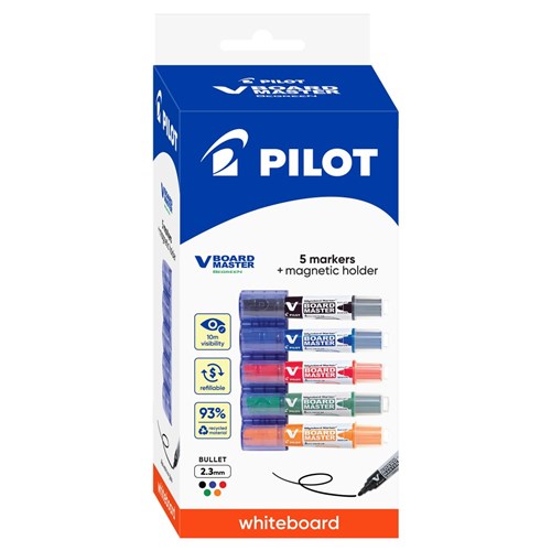 Pilot V Board Master Begreen Whiteboard Marker Bullet 2.3mm Assorted Wallet of 5 522448 In Stock Low Stock Low Stock Please See Attributes