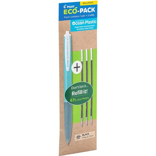 Pilot Eco Pack Super Grip G Retractable Ballpoint Ocean Plastic Pen+Refill 0.7mm Black