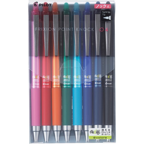 Pilot Frixion Point Knock Pen 0.4mm Synergy Tip Assorted Colours Wallet of 8