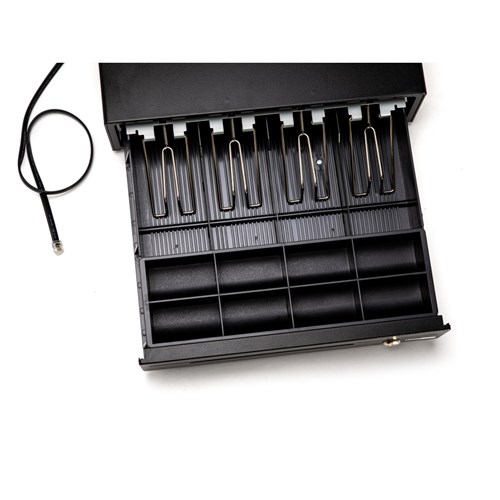 • The cash drawer is a classic black colour.