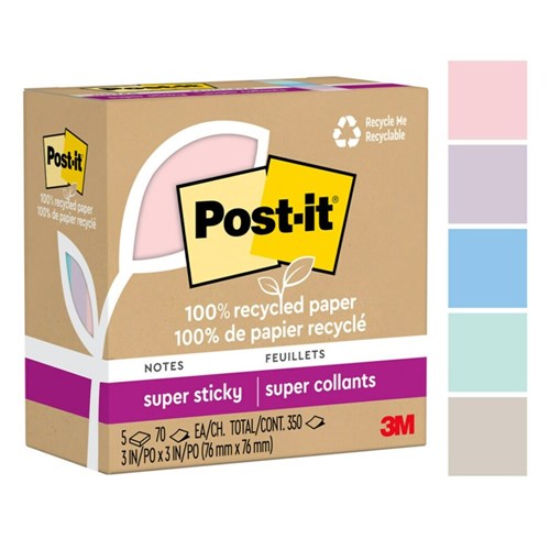 Post-It 654R-12SSNRP Super Sticky Notes 76mm x 76mm Wanderlust Pastels Pack Of 12 3161773 In Stock Low Stock Low Stock Please See Attributes