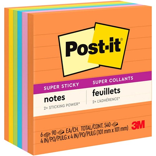 Super Sticky Post-it® Notes now come in great new colour palettes. Super Sticky Post-it® adhesive ensures that notes stick practically anywhere such as computer monitors, filing cabinets & furniture, and remain as easily removable as original Post-it® Notes.