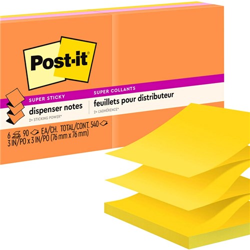 Notes pop-up one after the other, right down to the last note. Designed for use with Post-it® Pop-up Dispensers. 76x76mm - 90 or 100 sheets per pad.