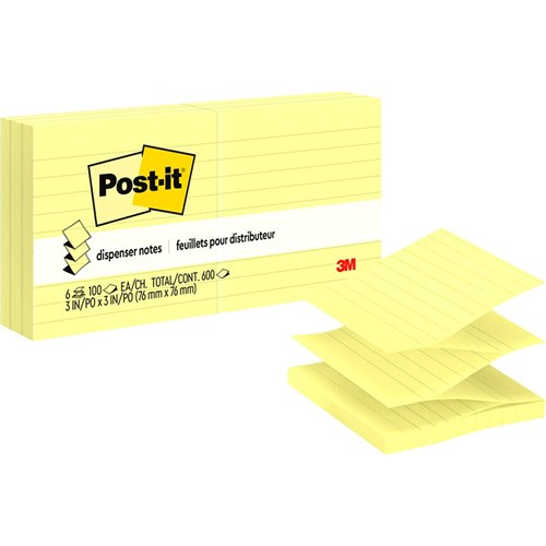 Notes pop-up one after the other, right down to the last note. Designed for use with Post-it® Pop-up Dispensers. 76x76mm - 100 sheets per pad. Sold in a Pack of 6