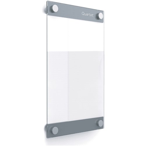 Personalise your workspace with Quartet Customisable Infinity Boards. Print custom artwork at home or a print shop and insert it between the glass panels to create a one-of-a-kind whiteboard. Perfect for patient charts, nurses stations, and signage in a store or restaurant. Easily erase writing from the non-absorbent glass surface. Express ideas again and again on a clear board that will not stain or ghost. Easily erase writing from the non-absorbent glass surface. Made to withstand heavy use, glass resists scratches and dents. Use magnets to post documents on the steel-backed surface. Comes with accessory tray, 1 marker and 2 high-power glass board magnets.