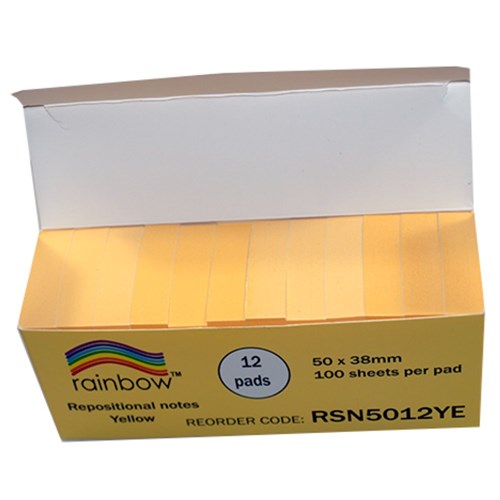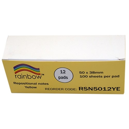 Rainbow Repositional Notes 38mm x 50mm Yellow Pack Of 12