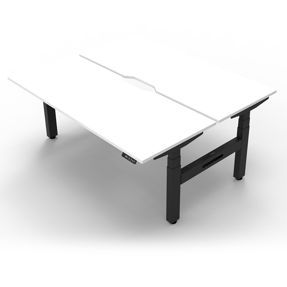 The entire Boost+ range has now been performance tested and is compliant to the AFRDI standards for general safety, strength, durability and stability in all sizes and configurations based on AS/NZS 4442:201. Natural White top Black frame. Unit Dimensions: 1800 W x 1500 D x 620mm - 1270mm H (Overall). Per User:1800mm W x 750mm D x 620mm - 1270mm H. E0 rated top, powder coated base. Keypad safety lock and reminder alarm setting. Digital control panel with 3 pre-set positions and LED display panel. Anti- collision and anti-tilt technology. Dual motor 3 stage motorised legs. 140kg weight loading capacity. 10 Year Manufacturer's Warranty.