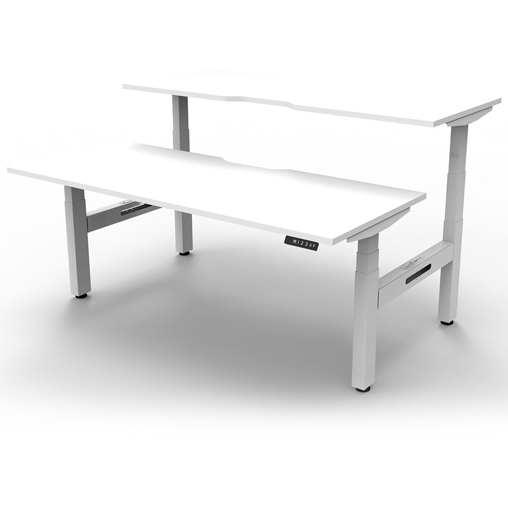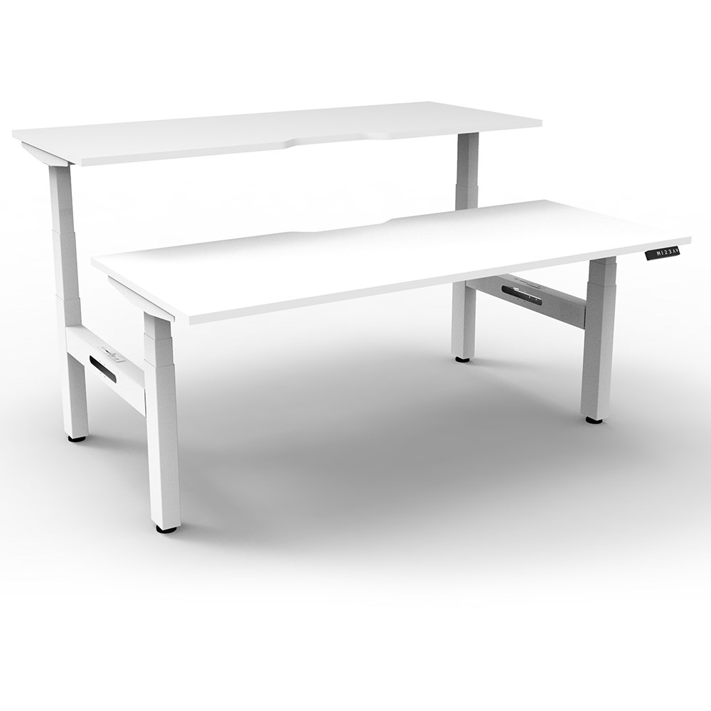 The entire Boost+ range has now been performance tested and is compliant to the AFRDI standards for general safety, strength, durability and stability in all sizes and configurations based on AS/NZS 4442:201. Natural White top White frame. Unit Dimensions: 1800 W x 1500 D x 620mm - 1270mm H (Overall). Per User:1800mm W x 750mm D x 620mm - 1270mm H. E0 rated top, powder coated base. Keypad safety lock and reminder alarm setting. Digital control panel with 3 pre-set positions and LED display panel. Anti- collision and anti-tilt technology. Dual motor 3 stage motorised legs. 140kg weight loading capacity. 10 Year Manufacturer's Warranty.