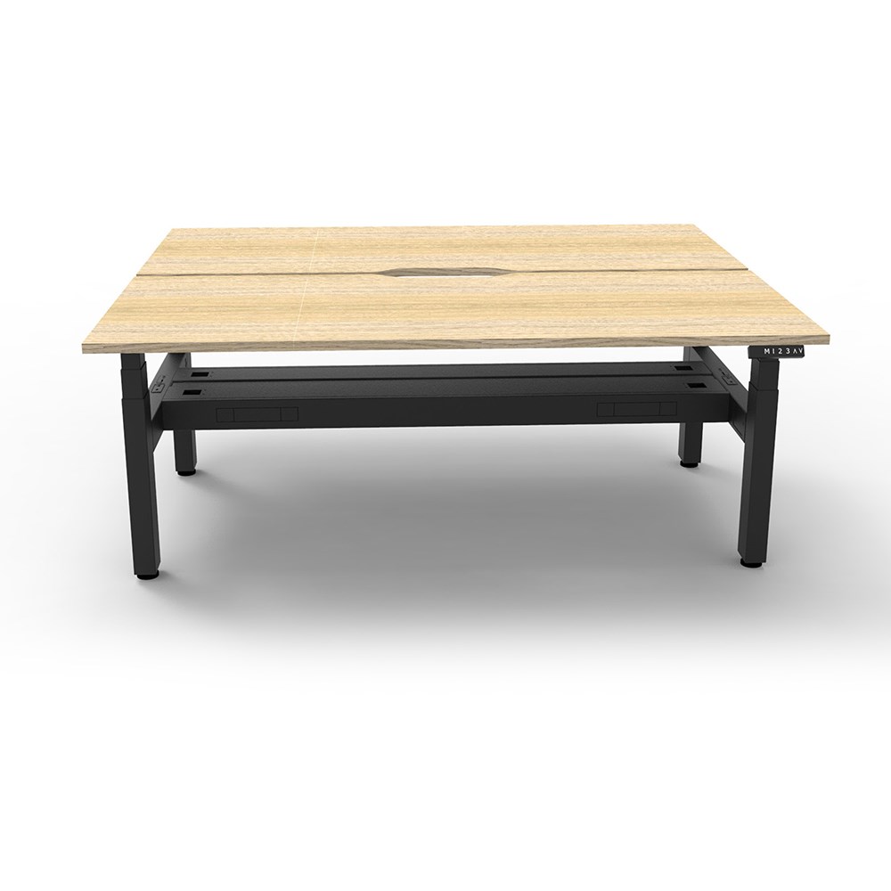 The entire Boost+ range has now been performance tested and is compliant to the AFRDI standards for general safety, strength, durability and stability in all sizes and configurations based on AS/NZS 4442:201. Unit Dimension: 1200mm W x 1500mm D x 1330mm H (Overall). Per User: 1200mm W x 750mm D. Desk Height: 620-1270mm H. Smooth and quiet adjustment at 38mm per second. Min Digital control panel with 3 pre-set positions, LED display panel, keypad safety lock and reminder alarm setting. Natural Oak coloured worksurface with 750mm depth top. 50mm D scallop cut out to rear. Back to Back Workstation with Cable Tray. Dual Motor 3 stage motorised legs. 140kg weight loading capacity. 10 Year Manufacturer's Warranty. Delivery, installation and assembly charges may apply to furniture. Please enquire to confirm.