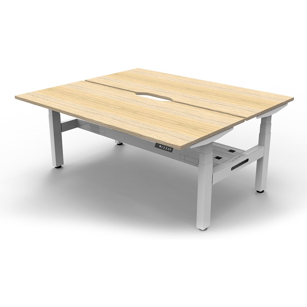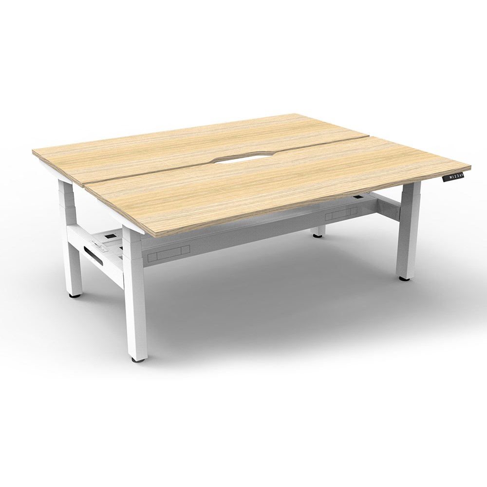 The entire Boost+ range has now been performance tested and is compliant to the AFRDI standards for general safety, strength, durability and stability in all sizes and configurations based on AS/NZS 4442:201. Unit Dimension: 1500mm W x 1500mm D x 1330mm H (Overall). Per User: 1500mm W x 750mm D. Desk Height: 620-1270mm H. Smooth and quiet adjustment at 38mm per second. Min Digital control panel with 3 pre-set positions, LED display panel, keypad safety lock and reminder alarm setting. Natural Oak coloured worksurface with 750mm depth top. 50mm D scallop cut out to rear. Back to Back Workstation with Cable Tray. Dual Motor 3 stage motorised legs. 140kg weight loading capacity. 10 Year Manufacturer's Warranty. Delivery, installation and assembly charges may apply to furniture. Please enquire to confirm.
