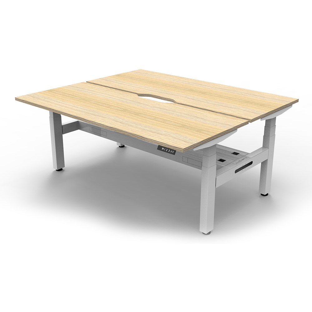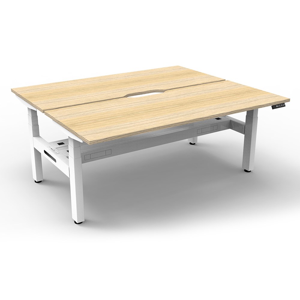 The entire Boost+ range has now been performance tested and is compliant to the AFRDI standards for general safety, strength, durability and stability in all sizes and configurations based on AS/NZS 4442:201. Unit Dimension: 1800mm W x 1500mm D x 1330mm H (Overall). Per User: 1800mm W x 750mm D. Desk Height: 620-1270mm H. Smooth and quiet adjustment at 38mm per second. Min Digital control panel with 3 pre-set positions, LED display panel, keypad safety lock and reminder alarm setting. Natural Oak coloured worksurface with 750mm depth top. 50mm D scallop cut out to rear. Back to Back Workstation with Cable Tray. Dual Motor 3 stage motorised legs. 140kg weight loading capacity. 10 Year Manufacturer's Warranty. Delivery, installation and assembly charges may apply to furniture. Please enquire to confirm.