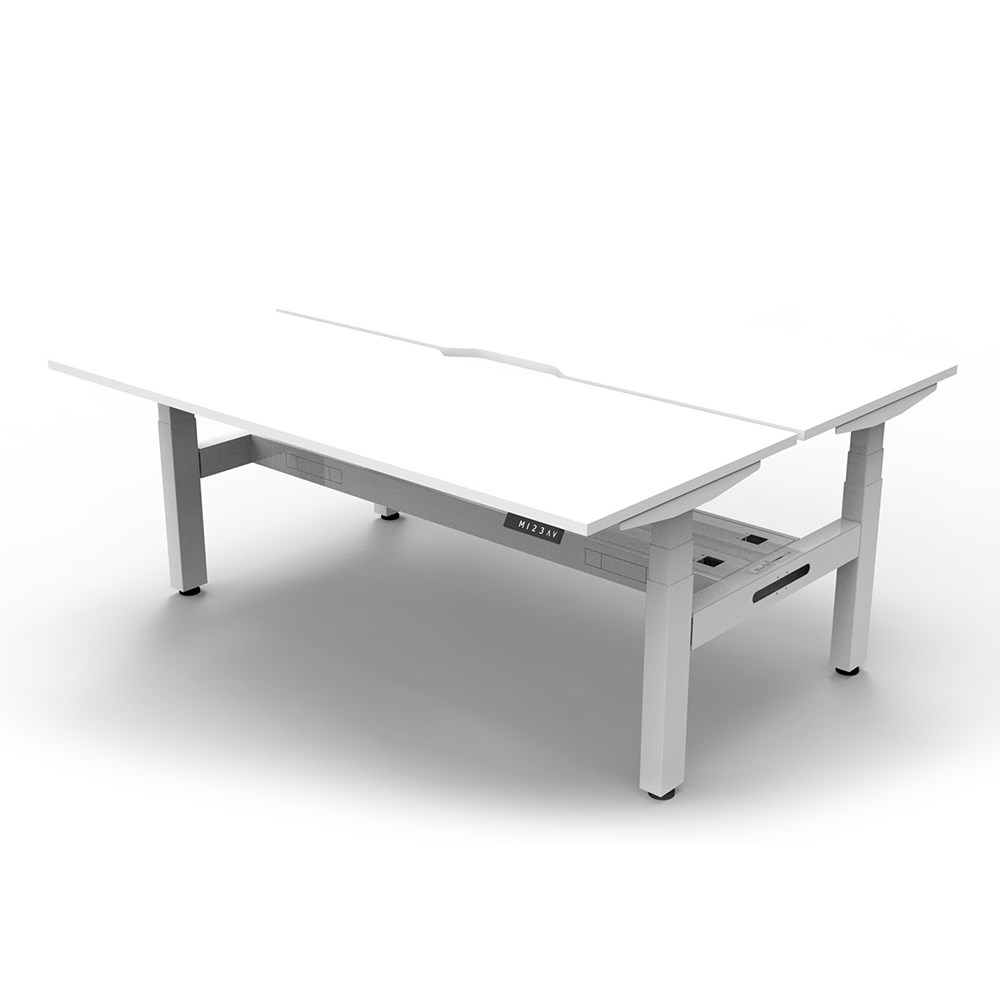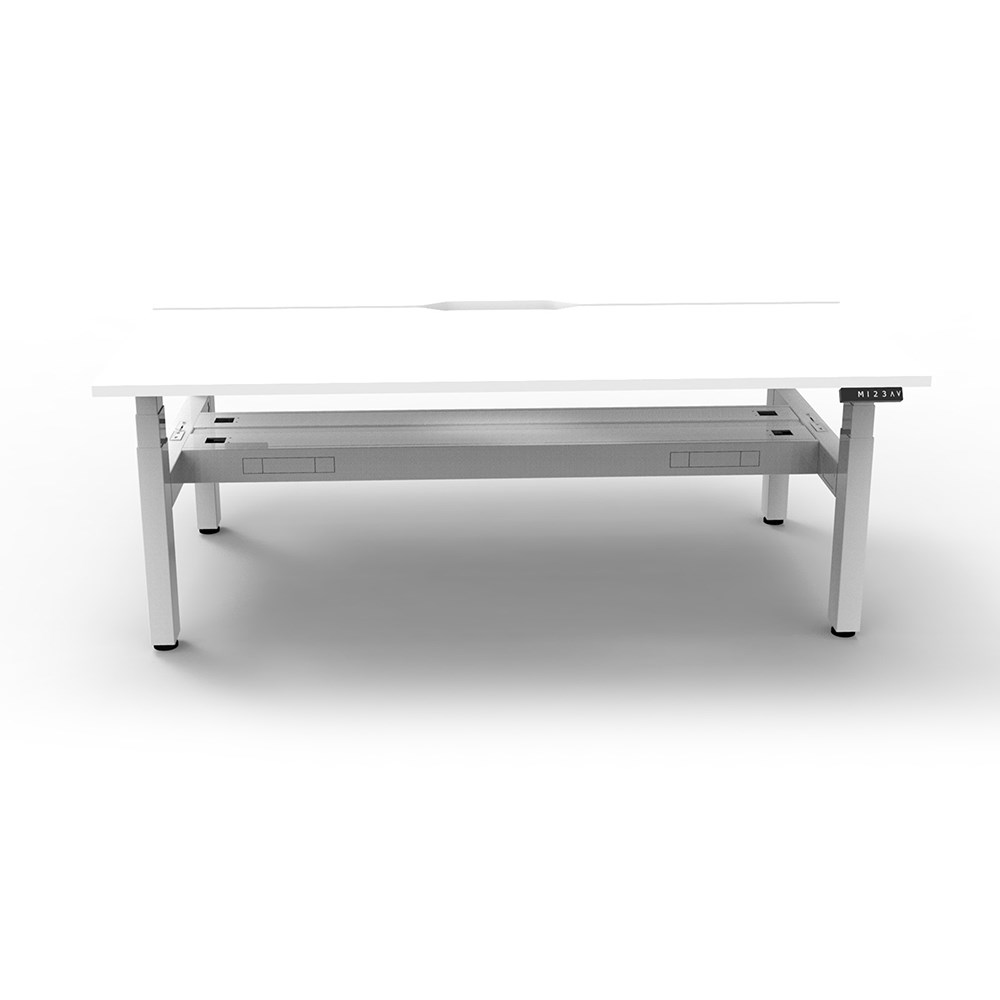 The entire Boost+ range has now been performance tested and is compliant to the AFRDI standards for general safety, strength, durability and stability in all sizes and configurations based on AS/NZS 4442:201. Unit Dimension: 1800mm W x 1500mm D x 1330mm H (Overall). Per User: 1800mm W x 750mm D. Desk Height: 620-1270mm H. Smooth and quiet adjustment at 38mm per second. Min Digital control panel with 3 pre-set positions, LED display panel, keypad safety lock and reminder alarm setting. Natural White coloured worksurface with 750mm depth top. 50mm D scallop cut out to rear. Back to Back Workstation with Cable Tray. Dual Motor 3 stage motorised legs. 140kg weight loading capacity. 10 Year Manufacturer's Warranty. Delivery, installation and assembly charges may apply to furniture. Please enquire to confirm.