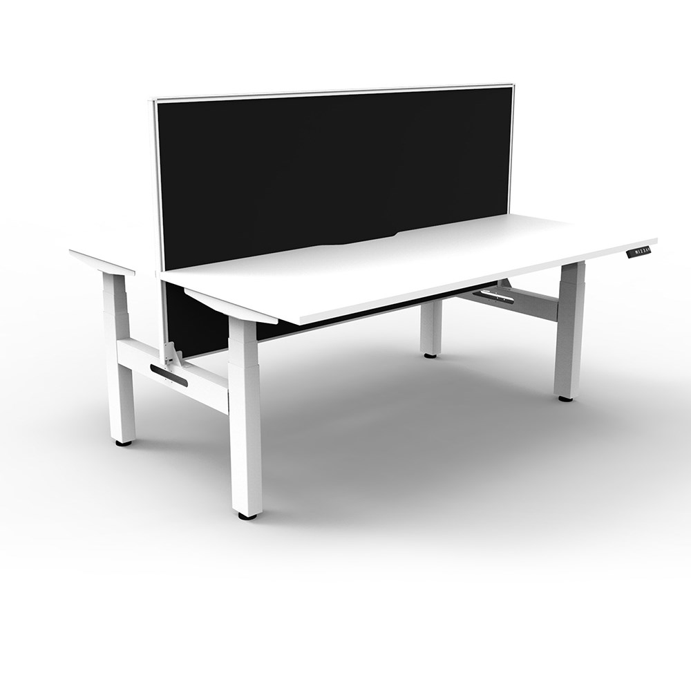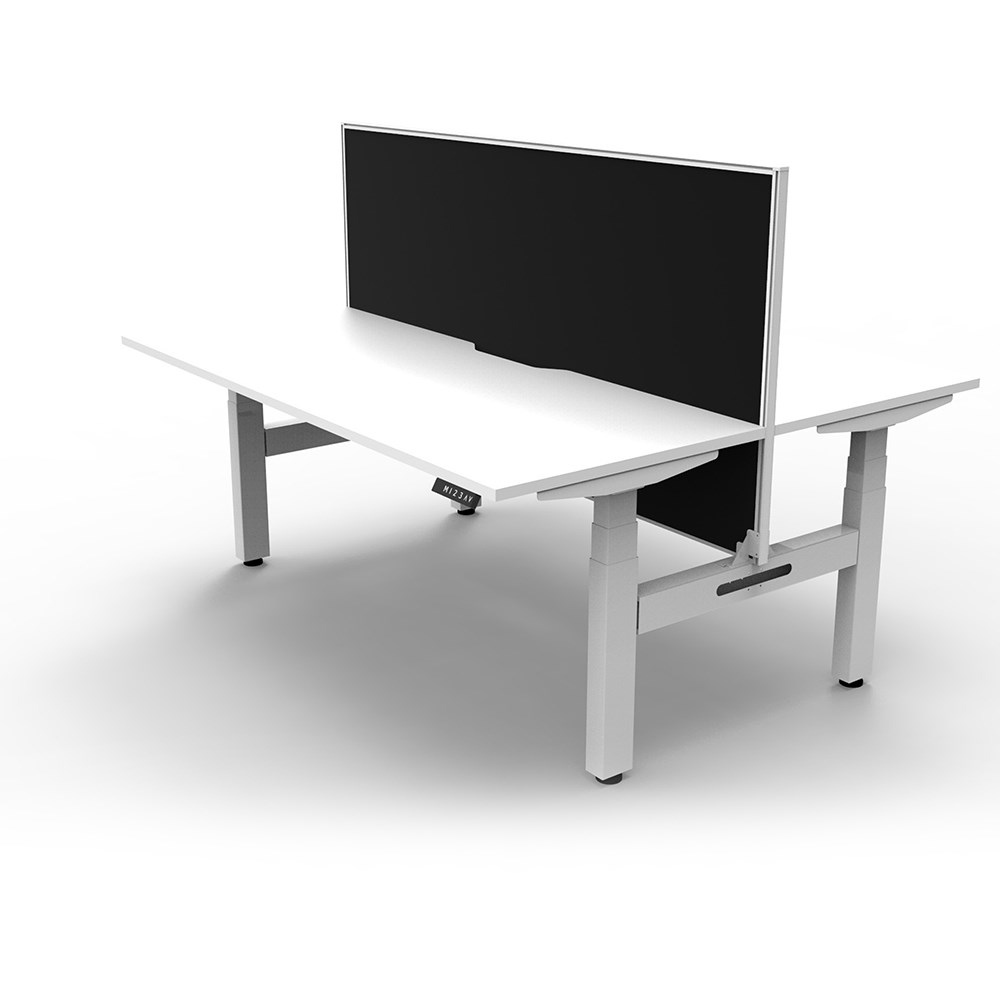 The entire Boost+ range has now been performance tested and is compliant to the AFRDI standards for general safety, strength, durability and stability in all sizes and configurations based on AS/NZS 4442:201. Unit Dimension: 1200mm W x 1500mm D x 1330mm H (Overall). Per User: 1200mm W x 750mm D. Desk Height: 620-1270mm H. Includes pinnable privacy screen in black fabric with matching white powder coated frame. 900mm H x 30mm T. Smooth and quiet adjustment at 38mm per second. Min Digital control panel with 3 pre-set positions, LED display panel, keypad safety lock and reminder alarm setting. Natural White coloured worksurface with 750mm depth top. 50mm D scallop cut out to rear. Back to Back Workstation with Screen. Dual Motor 3 stage motorised legs. 140kg weight loading capacity. 10 Year Manufacturer's Warranty.