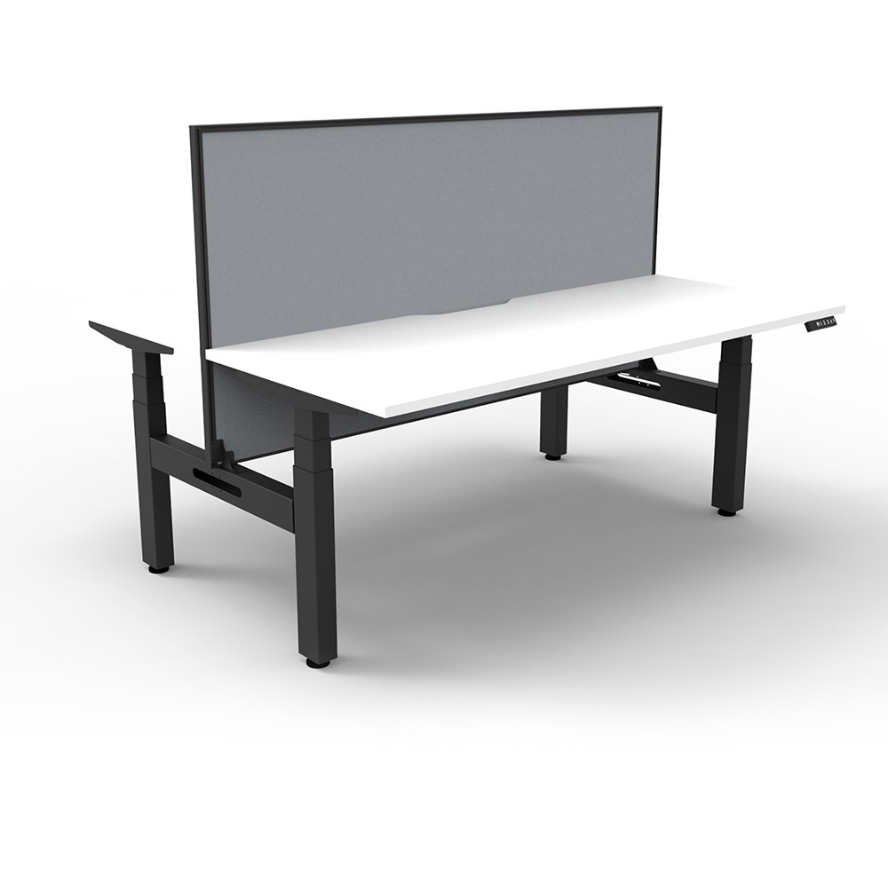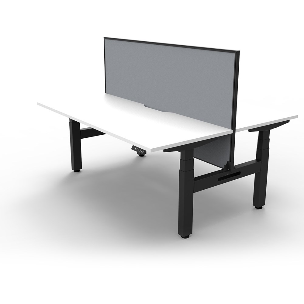 The entire Boost+ range has now been performance tested and is compliant to the AFRDI standards for general safety, strength, durability and stability in all sizes and configurations based on AS/NZS 4442:201. Unit Dimension: 1500mm W x 1500mm D x 1330mm H (Overall). Per User: 1500mm W x 750mm D. Desk Height: 620-1270mm H. Includes pinnable privacy screen in grey fabric with matching black powder coated frame. 900mm H x 30mm T. Smooth and quiet adjustment at 38mm per second. Min Digital control panel with 3 pre-set positions, LED display panel, keypad safety lock and reminder alarm setting. Natural White coloured worksurface with 750mm depth top. 50mm D scallop cut out to rear. Back to Back Workstation with Screen. Dual Motor 3 stage motorised legs. 140kg weight loading capacity. 10 Year Manufacturer's Warranty.