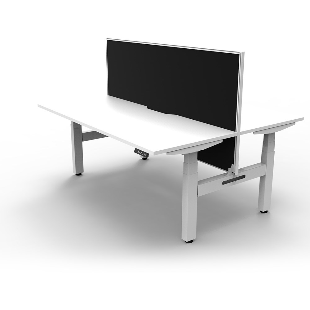 The entire Boost+ range has now been performance tested and is compliant to the AFRDI standards for general safety, strength, durability and stability in all sizes and configurations based on AS/NZS 4442:201. Unit Dimension: 1500mm W x 1500mm D x 1330mm H (Overall). Per User: 1500mm W x 750mm D. Desk Height: 620-1270mm H. Includes pinnable privacy screen in black fabric with matching white powder coated frame. 900mm H x 30mm T. Smooth and quiet adjustment at 38mm per second. Min Digital control panel with 3 pre-set positions, LED display panel, keypad safety lock and reminder alarm setting. Natural White coloured worksurface with 750mm depth top. 50mm D scallop cut out to rear. Back to Back Workstation with Screen. Dual Motor 3 stage motorised legs. 140kg weight loading capacity. 10 Year Manufacturer's Warranty.