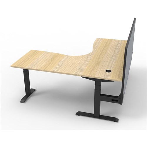 The entire Boost+ range has now been performance tested and is compliant to the AFRDI standards for general safety, strength, durability and stability in all sizes and configurations based on AS/NZS 4442:201. Unit Dimension:1800mm W x 1800mm W x 750mm D x 620mm - 1270mm H. Includes pinnable privacy screen in grey fabric with matching black powder coated frame. 900mm H x 30mm T. Smooth and quiet adjustment at 38mm per second. Digital control panel with 3 pre-set positions, LED display panel, keypad safety lock and reminder alarm setting. Natural Oak coloured worksurface with 750mm depth top. 50mm D scallop cut out to rear. 140kg weight loading capacity. Dual Motor 3 stage motorised legs. Corner Workstation with Screen. 10 Year Manufacturer's Warranty. Delivery, installation and assembly charges may apply to furniture. Please enquire to confirm.