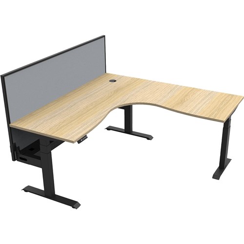 The entire Boost+ range has now been performance tested and is compliant to the AFRDI standards for general safety, strength, durability and stability in all sizes and configurations based on AS/NZS 4442:201. Unit Dimension:1500mm W x 1500mm W x 750mm D x 620mm - 1270mm H. Includes pinnable privacy screen in grey fabric with matching black powder coated frame. 900mm H x 30mm T. Keypad safety lock and reminder alarm setting. Digital control panel with 3 pre-set positions. LED display panel. Anti- collision and anti-tilt technology. Dual Motor 3 stage motorised legs. Corner Workstation with Cable Tray and Screen. 140kg weight loading capacity. 10 Year Manufacturer's Warranty. Delivery, installation and assembly charges may apply to furniture. Please enquire to confirm.