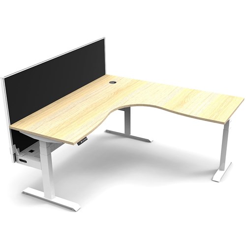 The entire Boost+ range has now been performance tested and is compliant to the AFRDI standards for general safety, strength, durability and stability in all sizes and configurations based on AS/NZS 4442:201. Unit Dimension:1800mm W x 1800mm W x 750mm D x 620mm - 1270mm H. Includes pinnable privacy screen in black fabric with matching white powder coated frame. 900mm H x 30mm T. Keypad safety lock and reminder alarm setting. Digital control panel with 3 pre-set positions. LED display panel. Anti- collision and anti-tilt technology. Dual Motor 3 stage motorised legs. Corner Workstation with Cable Tray and Screen. 140kg weight loading capacity. 10 Year Manufacturer's Warranty. Delivery, installation and assembly charges may apply to furniture. Please enquire to confirm.