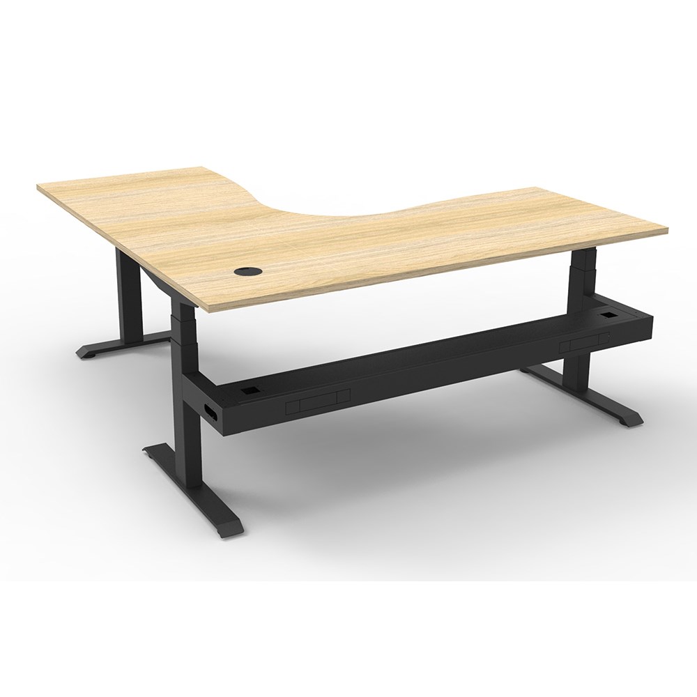 The entire Boost+ range has now been performance tested and is compliant to the AFRDI standards for general safety, strength, durability and stability in all sizes and configurations based on AS/NZS 4442:201. Natural Oak top Black frame. Includes cable tray. Unit Dimensions: 1800W x 1800W x 750D x 620mm - 1270mmH. E0 rated top, powder coated base. Keypad safety lock and reminder alarm setting. Digital control panel with 3 pre-set positions and LED display panel. Anti- collision and anti-tilt technology. Dual motor 3 stage motorised legs. 140kg weight loading capacity. 10 Year Manufacturer's Warranty.