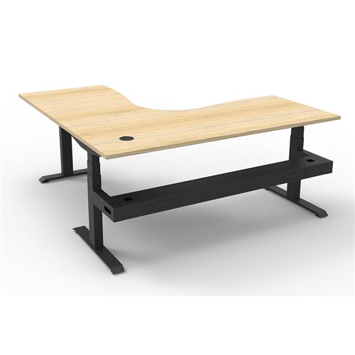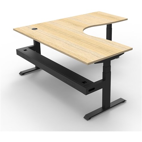 The entire Boost+ range has now been performance tested and is compliant to the AFRDI standards for general safety, strength, durability and stability in all sizes and configurations based on AS/NZS 4442:201. Natural Oak top Black frame. Includes cable tray. Unit Dimensions: 1800W x 1800W x 750D x 620mm - 1270mmH. E0 rated top, powder coated base. Keypad safety lock and reminder alarm setting. Digital control panel with 3 pre-set positions and LED display panel. Anti- collision and anti-tilt technology. Dual motor 3 stage motorised legs. 140kg weight loading capacity. 10 Year Manufacturer's Warranty. Delivery, installation and assembly charges may apply to furniture. Please enquire to confirm.